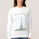 Esta camisola apresenta uma caneta original e branca e desenho a tinta da Torre Eiffel em Paris, França. O texto diz "Paris Life Oui!" Copyright Leah Wiedemer
