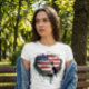 Este impressionante design de silhueta de cão patriótico captura um companheiro leal sentado orgulhosamente em um penhasco rochoso sob uma lua brilhante estilizada com a bandeira americana. Enquadrada por galhos sombrios e uma paisagem florestal tranquila, a cena evoca força, lealdade e o espírito duradouro do amante de cães americano.