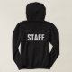 FUNCIONARIOS de capuz para a equipe, funcionários da equipe. Excelente também para pessoal e funcionários da empresa. Design de tipografia a negrito. Cores pretas e brancas ou personalizadas. Faça seu próprio vestuário personalizado para colegas de trabalho, trabalhadores, voluntários, assistentes de caridade, equipe, contínuos, etc. Roupas personalizáveis com fonte moderna. É útil para festas, eventos, feiras, feiras, shows de comércio, casamento, discoteca, clube, bar, pub, trabalhos de segurança, etc. Impresso no dois lados. Logótipo próprio opcional.