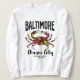 Uma legal ilustração de um caranguejo com a bandeira mariland e as palavras Baltimore Charm City