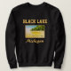 Imagem de cartão postal do lago Negro, bonito, em estilo vintage, neste bonito camisola norte (ou capuz). Black Lake é um grande norte de todos os esportes, Michigan Lake, com muitos residentes de várias gerações que estão lá de férias. É famoso pela pesca de esturjão no inverno. E também para o centro de conferências da UAW.