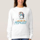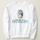 Pinguim Cartunista, Chillin Like a Penguin with Coffee Winter sweatshirt Um pinguim engraçado minimalista e cartoonista que veste um cachecol colorido, segurando uma caneca fumegante de cacau quente com marshmallows com o texto Chillin em letras negrito e divertida com efeitos gelados.