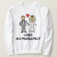 Um belo desenho de um casal recém-casado, intitulado 'sob nova direção'. É a noiva ou o noivo que veste as calças no casamento? Excelente para um presente de casamento, ou para vestir na lua de mel.