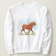 Um cavalo sorrado tem um casaco vermelho de castanheiro e um homem leve e magro. Este design está disponível em uma variedade de cores e marcas de cavalos para que você possa encontrar o que se parece mais com o seu cavalo favorito.