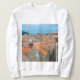 Pintura de telhados vermelhos e mar azul do muro da cidade de Dubrovnik em Dubrovnik, Croácia. Vista de cima do centro da cidade antiga