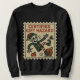 Stay cozy and chaotically festive in this women’s sweatshirt featuring a vintage “postage stamp” graphic of a skeleton elf slipping on giant ornaments beneath the phrase “CERTIFIED GIFT HAZARD.” Warm tan, green, and red tones give the design a worn retro print feel, while the bony elf and flying baubles add hilarious dark humor to classic holiday imagery. Perfect for last-minute shoppers, clumsy wrappers, and anyone who turns gift exchanges into delightful chaos, this alternative Christmas pullover pairs effortlessly with jeans, leggings, or cozy skirts for parties, ugly sweater nights, or relaxed winter days.