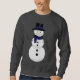 Bring a touch of classic winter charm to your wardrobe with this cheerful snowman sweatshirt. The design features a smiling snowman ina traditional black top hat trimmed with a dark blue sash and matching scarf-simple, timeless, and full of holiday warmth. Printed on a soft, dark grey sweatshirt that's comfortable, warm and perfect for the season. Ideal for festive outings of cozy family moments when paired with the matching womens and family shirts.