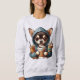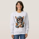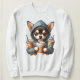 Um adorável chihuahua vestindo uma camisa de suor encapuzada cercada por xícaras de café e bebidas deliciosas. Uma representação artística e caprichosa ideal para temas de relaxamento, cultura cafeeira e estilo de vida fofo para animais.