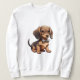Esta camisola apresenta um doce, branco, chocolate e um dachshund bronzeado vestindo uma gravata arco que certamente roubará seu coração. Este design bonito e brincalhão é perfeito para qualquer amante de dachshund demonstrar seu amor por esta raça de cachorro ou fazer um presente perfeito para qualquer entusiasta de dachshund. Quer você seja um orgulhoso dono de dachshund ou simplesmente ame a raça dachshund, esta camisola é uma adição obrigatória à sua coleção. conteúdo generativo