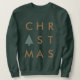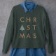 Simple, stylish "Christmas" quote unisex sweatshirt with a minimalist sage green christmas tree design and gold text in modern typography. The text can be customised with your own letters for the perfect holiday gift! The jumper is featured in a trendy forest green. | #christmas #holidays #apparel #fashion #womens #giftsforher