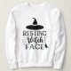 Uma design de citação tipográfica engraçada para bruxas do Halloween, que diz: "Rosto de bruxa Descansada".