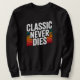 Celebrate timeless style with this bold “Classic Never Dies” retro design. Featuring clean white typography paired with vibrant vintage sunset stripes, this design delivers a nostalgic 70s–80s aesthetic that never goes out of fashion.