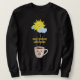 A cute design combining a smiling cartoon coffee cup inside a natural coffee spot.