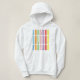 Padrão geométrico linear, retangular, listrado, de tons de arco-íris pastel azuis, laranja, verde, rosa, roxo, vermelho e amarelo.