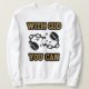 Esta camisola masculina tem uma design que apresenta uma fonte impressão do Kompot Slab com letras coloridas em ouro contorno preto que mostra a frase "Com Deus Você Pode" com um impressão de tipografia neste tema de citação bíblia de fé forte. Esta camisola é feita de 100% de algodão esta camisa é ao mesmo tempo peluda e durável, o que faz com que uma combinação de excelentes tenha uma imagem correspondente menor no verso.
