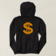 Hoodie com as palavras "Know My Worth" em cores africanas, com uma coroa ouro no topo. A parte traseira apresenta um sinal de dólar ouro.