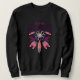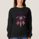 Design de camiseta legal mostrando uma ilustração de uma caçadora de sonhos com penas rosa, brancas, azuis e roxas. Também apresenta a citação "Continuar a Sonhar".