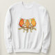 Três corujas coloridas e bonitas sentadas em ramos de pinheiros