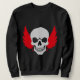 Criei o crânio com as asas usando o Adobe Illustrator e colori com cores vermelha e cinza.
