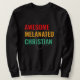 Simples e fantástico camisola cristã unisexo melanata para homens e mulheres com TEXTO PERSONALIZÁVEL. A design mostra tipografia ousada, vermelha, amarela e verde-clara e um contorno de efeito gravado da África. A palavra CHRISTIAN é PERSONALIZÁVEL para que você possa alterá-la ou adicionar seu nome. Este seria um Caribe africano-americano excelente para vestir quando estiver fora e por aí, especialmente durante o Mês da História Negra ou durante todo o ano em eventos culturais negros e para mostrar uma melanina maravilhosa, exprimindo orgulho em sua identidade.