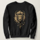 A striking, stylized portrait of a lion rendered in bold golden tones against a deep black background. Its flowing mane, sharp yet fluid, seems to merge with abstract shapes and leaves, giving the impression of both wildness and grace. The lion’s piercing eyes convey strength, authority, and wisdom, making it a symbol of courage, leadership, and resilience. The interplay of light and shadow creates a sense of depth and intensity, giving the artwork a regal, almost mythical presence. Perfect for evoking power, nobility, and untamed spirit.