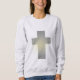 Uma cruz de prata radiante contra um fundo circular brilhante, simbolizando fé, luz e força espiritual. A design combina um estilo moderno minimalista com uma poderosa mensagem religiosa.