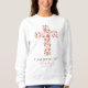 Camisola de lindas fés femininas, com uma cruz floral cor-de-água rosa, e o ditado religioso "Estou sempre consigo (Mateus 28:20)".