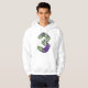 Uma fonte realmente interessante é o que este número três é feito. O número 3 é grande e está na face de uma fonte de tipo cristal. Tem coloração verde e roxa através dela. Este design de fonte cristalina número 3 parece excelente neste significa capuz. Perfeito para si mesmo ou como presente