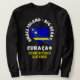 Stylish CURAÇAO Soccer Custom 2026 sweatshirt in BLACK with CUSTOMIZABLE TEXT. The words read SMALL ISLAND BIG HEART and the CUSTOMIZABLE TEXT reads THE NEW 2026 SOCCER GIANT-KILLERS. Design shows Curacaoan flag inside a heart, with the map outline of the island on top. Perfect CURAÇAO 'underdog' soccer sweater for wearing to Dutch, national and international soccer football matches to watch your favorite national team. Buy matching couple tees or matching group shirts for the family. Available in white.