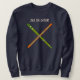 The message on this graphic sweatshirt is ready to be customized with your own text. Your slogan sits over my vintage skis illustrations. The crossed skis--one in orange and one in lime green form an X shape.