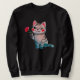 Moletom Cute Watercolor Cat Holding Red Carnation Birth Fl
