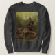 Vitorioso, depois de uma longa batalha com demônios e imps, o caçador de demônios de cabelo vermelho se coloca sobre seu inimigo vencido. Óleo no painel