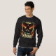 Um design ousado e artístico com uma cara de gato feroz com sussurros brilhantes, olhos iluminados, e um halo sutil, acompanhado do texto "Meus Demônios Internos"