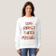 Esta mulher mostra as palavras "Deus Torna as Coisas Possíveis" em uma impressão única fonte de idade espacial com letras negras laranja contorno neste estilo e tema baseado em dupla cor-de-fé. Esta camisola é feita de 100% de algodão, esta camisa é ao mesmo tempo peluda e durável, que faz uma combinação de excelentes com uma imagem correspondente menor impressa no verso.