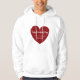 Decorado com um grande coração vermelho. Personalize e adicione seu nome. Texto branco.