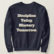 Bold motivational sweatshirt with Discipline Today Mastery Tomorrow quote. Perfect gift for engineers, students, athletes, and driven professionals chasing excellence.