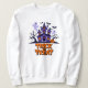 Uma casa assombrada e balbusta é alta, cercada por fantasmas e morcegos, convidando pequenos a se juntar à tradição de truques do Halloween ou tratando com alegria e misericórdia.