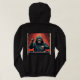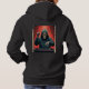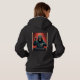 Carimbo de postagem retrógrado de um esqueleto capoteado DJ com uma face do crânio, mãos erguidas no ar, fundo vermelho-holandês, borda de punho irregular, estilo de vintagem angustiado, tons negros e vermelhos.