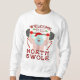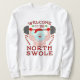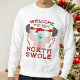 Papai Noel não está mexendo com os biscoitos. Este ano, ele levanta pesos em vez de levantar óculos de leite. Este doce engraçado de Natal Feio mostra um Papai noel sem camisa levantando uma campainha em suas mãos luvas. Ele está rodeado de conchas e doces, e o texto diz: "Bem-vindo ao Swole Norte." Ninguém mais nas suas festas de Natal terá um suéter de Natal Feio neste espetacular!