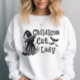 Fique tranquilo e na moda nesta estação assustadora com nossa camisola de "Lady Gato Idiota". Apresentando um gato preto bonito, mas assustador, com morcegos, é perfeito para dias de outono nítidos, visitas domiciliares assombradas, ou se enrolando com seu gatinho. Uma conversa de excelente começa e é um presente para amantes de gatos com um senso de humor perverso.