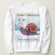Glide suavemente na temporada de festas com esta camisa humorística. O topo festivo mostra um caracol alegre em uma paisagem nevada, vestindo seu suéter de natal estilo nórdico padronizado e acessórios florais de poinsettia vermelha. A legenda pun-tastic abaixo é 'Shell-ebrate in style'. Este design surreal certamente levanta um sorriso, quer você arrume a camisola no "dia de suéter feio" ou quando estiver comprando presentes de férias. No topo, a saudação tradicional do "Feliz Natal" acrescenta um toque de nostalgia em letras retrógradas.