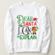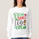 Esta camiseta engraçada de Natal mostra uma design divertida com cores vibrantes e elementos festivos. A frase Caros Papais noeis, Eu Posso Explicar é exibida de forma destacada, juntamente com ilustrações caprichosas de folhas sagradas, um floco de neve, e um alegre pastor vestindo um chapéu de Papai Noel.