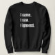 Design de citação sarcástica de ouro dizendo que eu vim. Eu vi. Eu ignorei. em texto branco forte sobre fundo negro, perfeito para introvertidos ou amantes do humor.