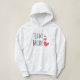 Design incrível com a citação "Equipe da Noiva" e três corações vermelhos. Ótima e divertida ideia de roupa para uma despedida de solteira ou para a festa de casamento.