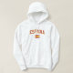 Tipo da " ESPANHA" e bandeira nacional em um estilo limpo. A palavra ESPANHA é ajustada em um carácter tipo escolar do estilo em um arco sobre uma imagem da bandeira espanhola. A bandeira da espanha consiste em três listras horizontais: vermelho, amarelo e vermelho, a listra amarela que é duas vezes o tamanho de cada listra vermelha. A brasão espanhola está na listra amarela, descentralizada à esquerda.