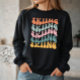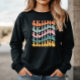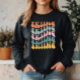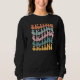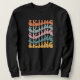Camisola de esqui. © Camisetas & Sweats na Zazzle. Este suéter tem a palavra Skiing repetido em letras retroradas e várias cores.
