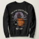 Esta design de Halloween assustadora, mas humorística, apresenta um gato preto rabugento sentado em frente a uma abóbora gigante, ameaçadora e uma casa assombrada, silenciada por uma lua de cheio. O texto "ESTA É A MINHA CASA HAUNTED" e "SAIR" é uma mensagem perfeita, direta e engraçada para aqueles que querem que seu espaço seja assustador e ininterrupto.