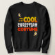 Brincadeira, na moda Christian Halloween com a redação ESTE É MEU LEGAL COSTUME CRISTÃO, desenhado com gráficos coloridos e tipografia e dois mundos brancos com cruzes. Esta camisola cristã do Dia das Bruxas seria excelente de vestir às suas festas de elogio anti-Halloween, festas leves e/ou serviços escolares de domingo, etc. Escolha entre uma ampla seleção de designs do Dia das Bruxas Cristãs por Designs Bereanos, especialmente criados para pessoas de fé que querem celebrar um alternativo para o Dia das Bruxas.
