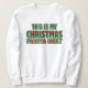 Esta camisola branca apresenta texto em negrito em um padrão de xadrez vermelho e verde festivo. A frase "ESTE É MEU" aparece no topo, seguida de "NATAL" em uma fonte maior, e "CAMISA PAJAMA" no fundo. A design é simples e diz diretamente seu propósito como uma confortável roupa de Natal.