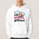 Este capuz fofo é o presente ideal para qualquer namorado ou namorada apaixonado. A legenda diz "Eu amo (coração) meu namorada LINDO" em fontes modernas cor-de-rosa-preto e escuro. Facilmente personalizável adicionando uma foto personalizada em um grande quadro azul em forma de coração.